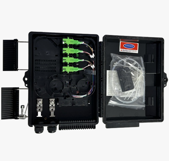 Caja de terminación FTTH de pared/poste 16 Puertos IP65 + Splitter 1*8 SC/APC + 8 Adaptadores SC/APC, Negra
